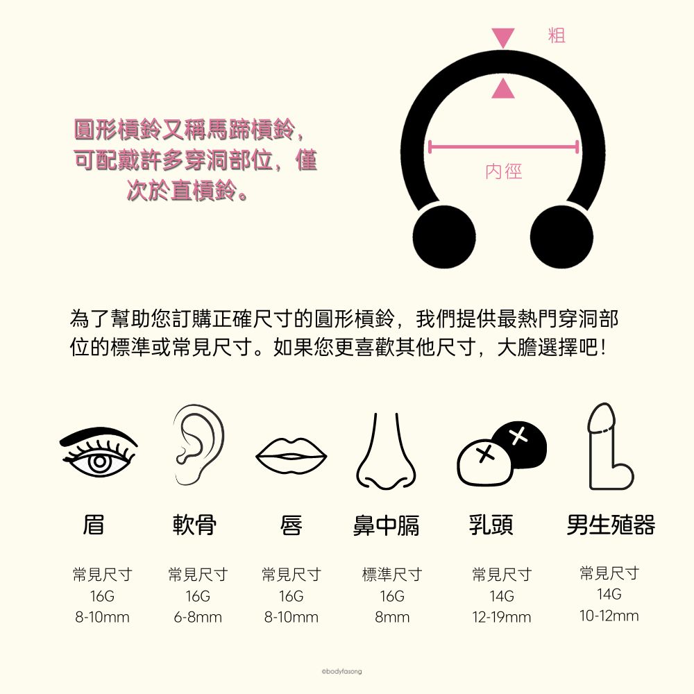 【法頌體環】超粗馬蹄槓鈴 12G至00G 316L醫療鋼