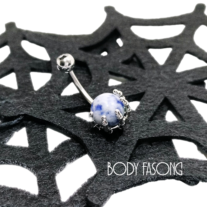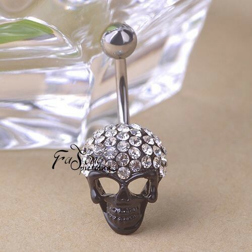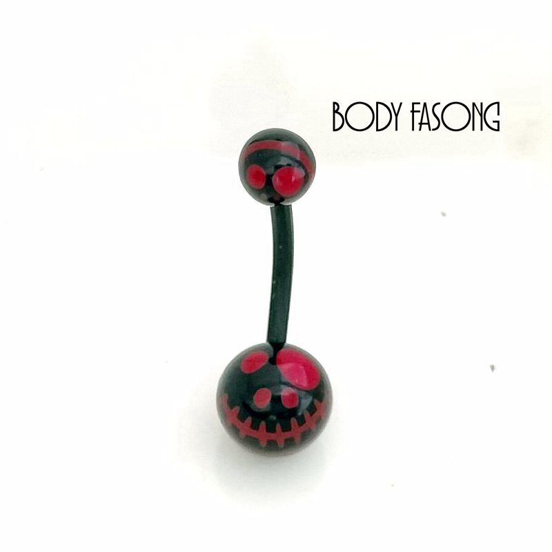 【法頌體環】肚臍環 黑色粉鑽骷髏頭 316L醫療鋼