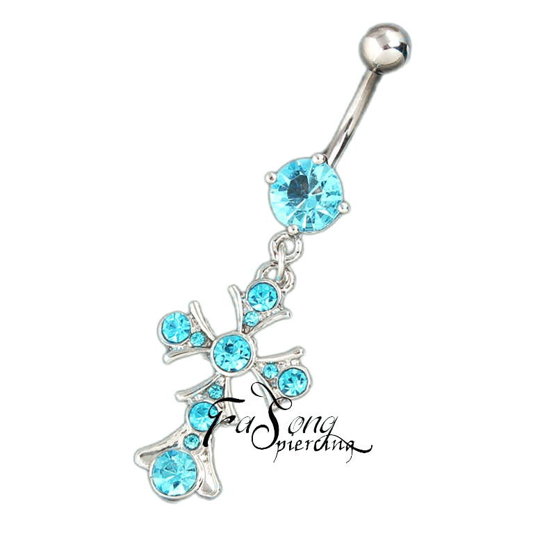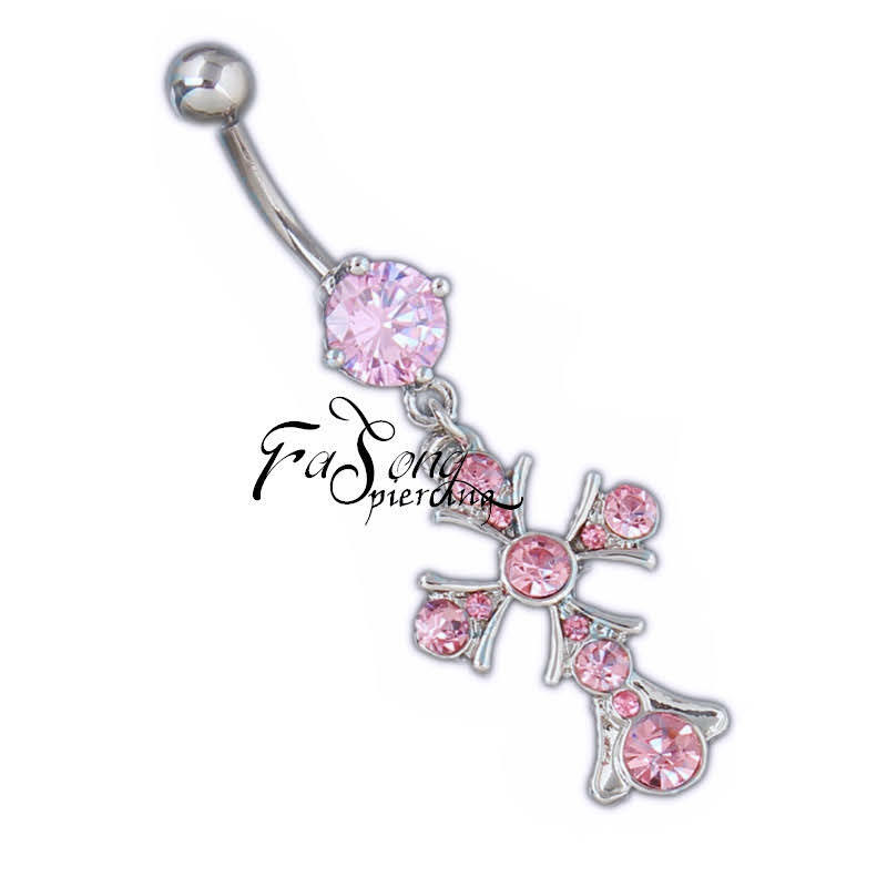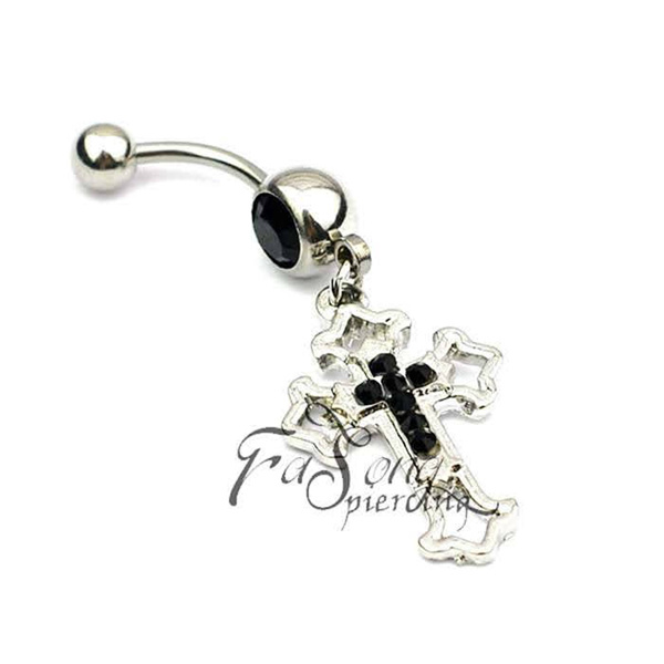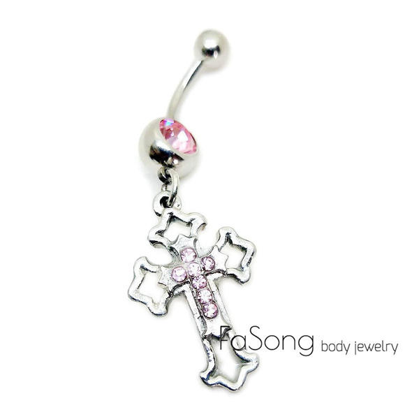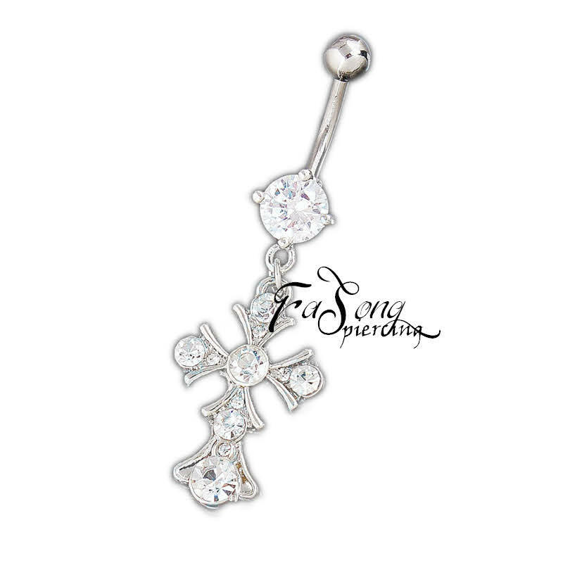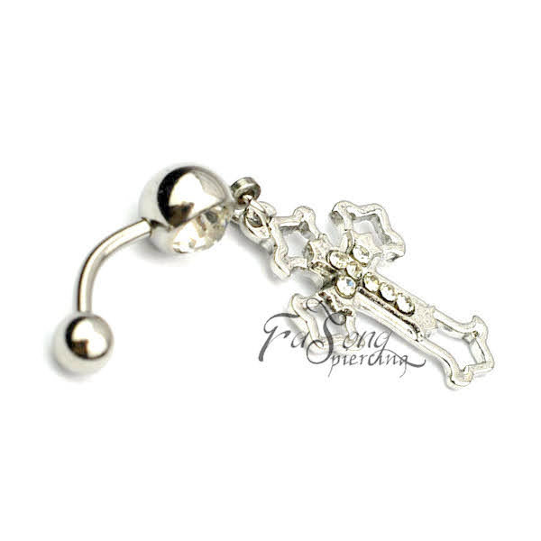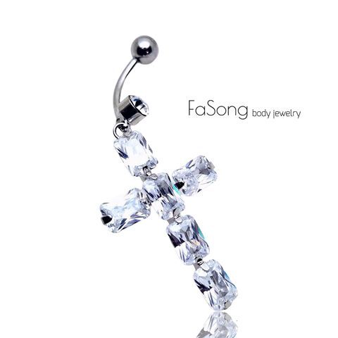 【法頌體環】肚臍環 滿鑽十字架 316L醫療鋼 粗針