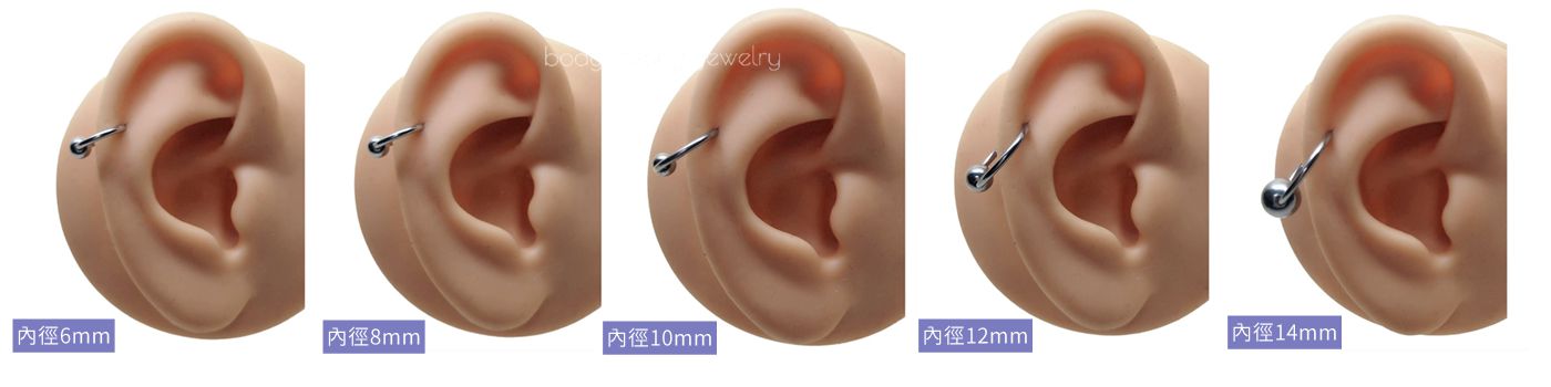 環形的耳環有大有小,而每個人的耳朵厚薄不同,適合配戴的尺寸各有差異。