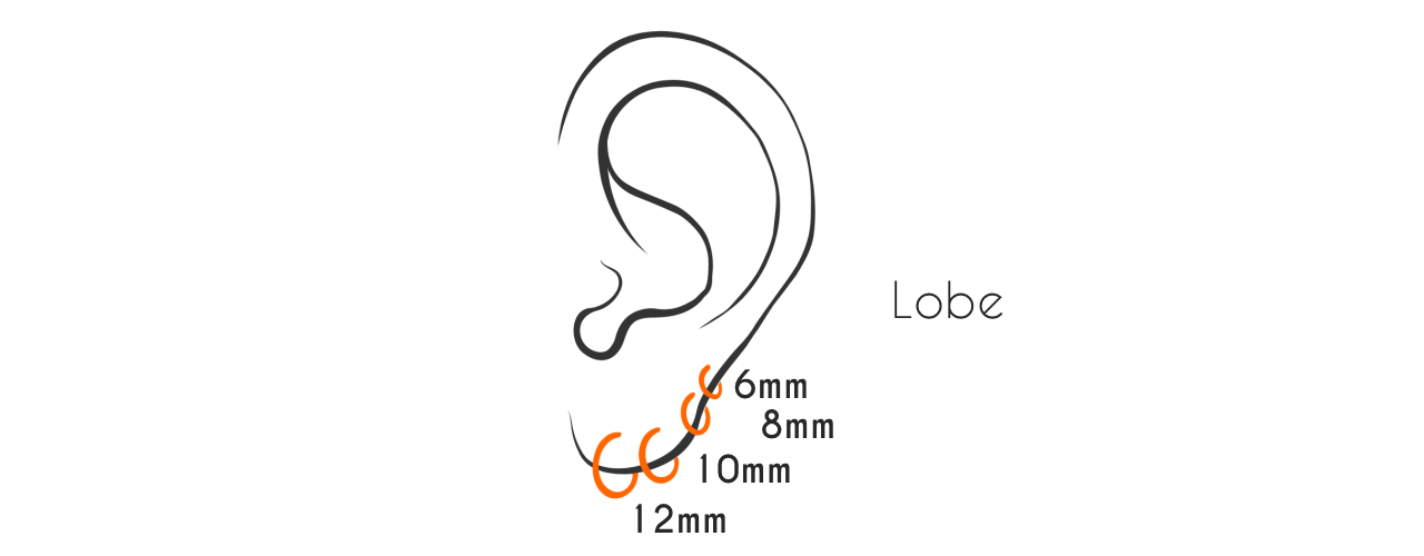 癒合時間:4至8週 / 初穿規格:22G至10G / 尺寸:8mm至16mm / 初穿款式: