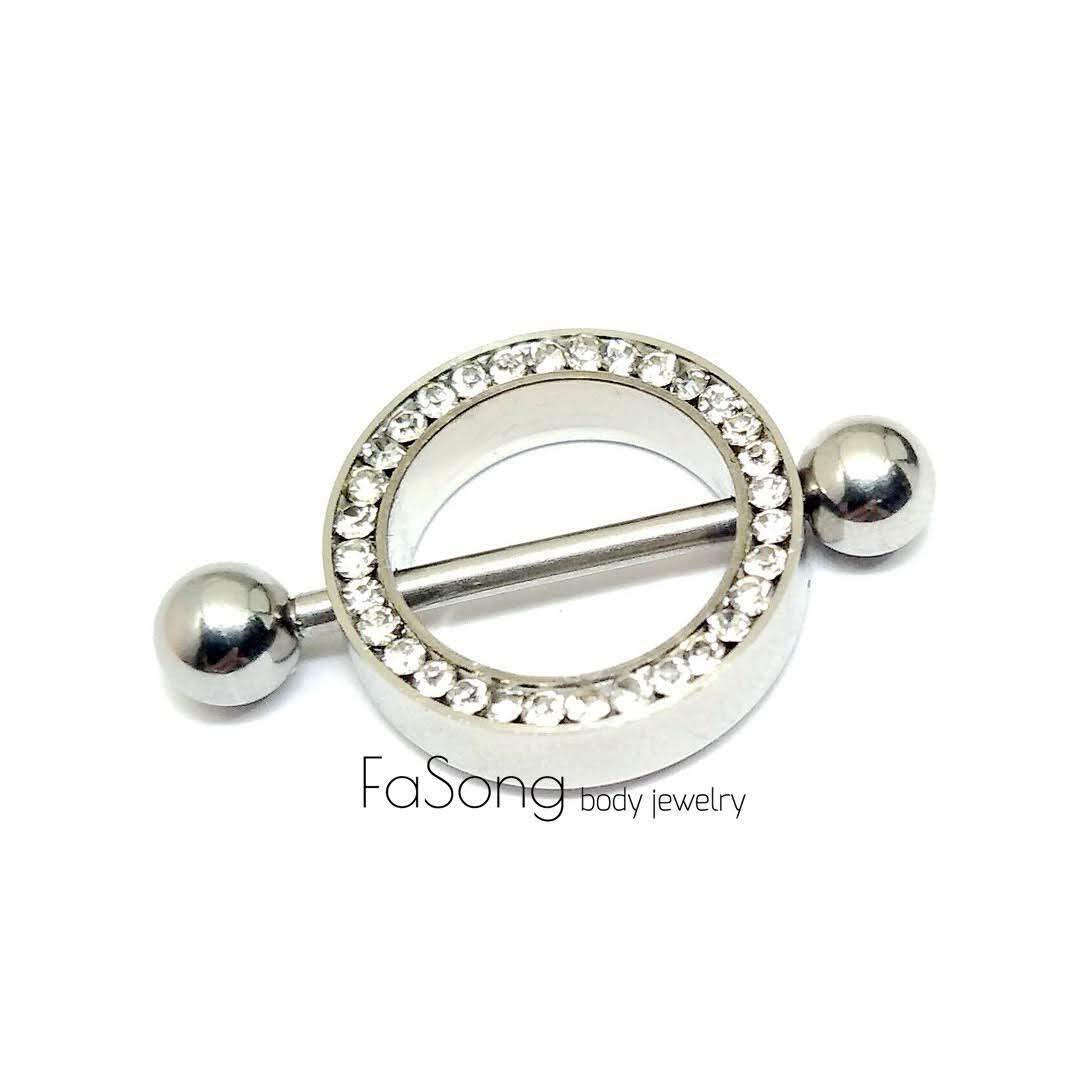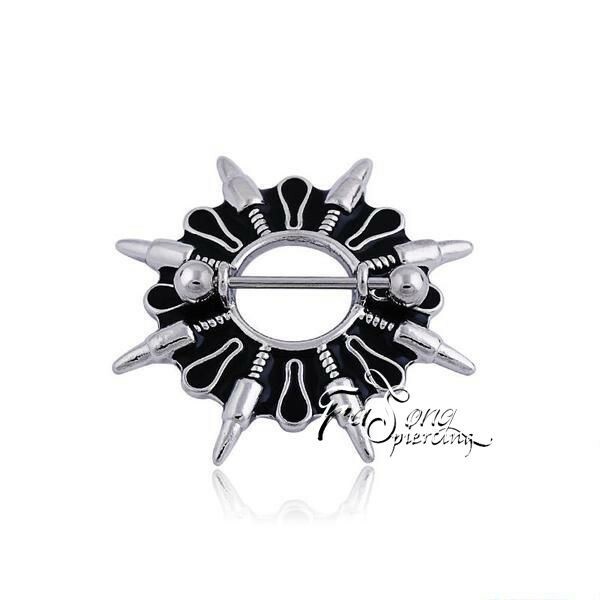 乳頭罩,包括垂墜式乳環,以直槓鈴與鏤空造型,覆蓋整個乳頭乳暈。