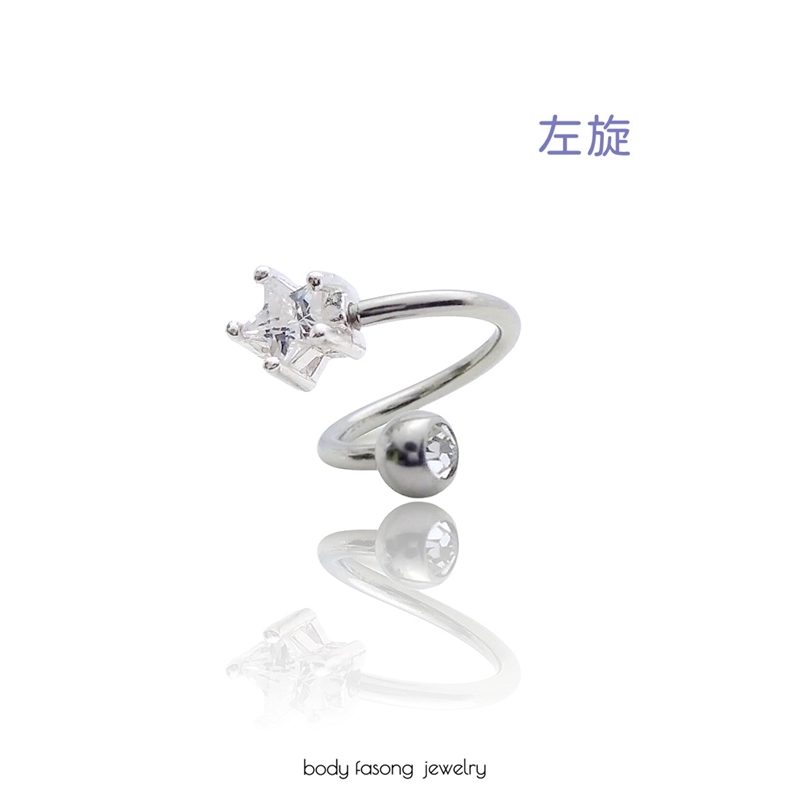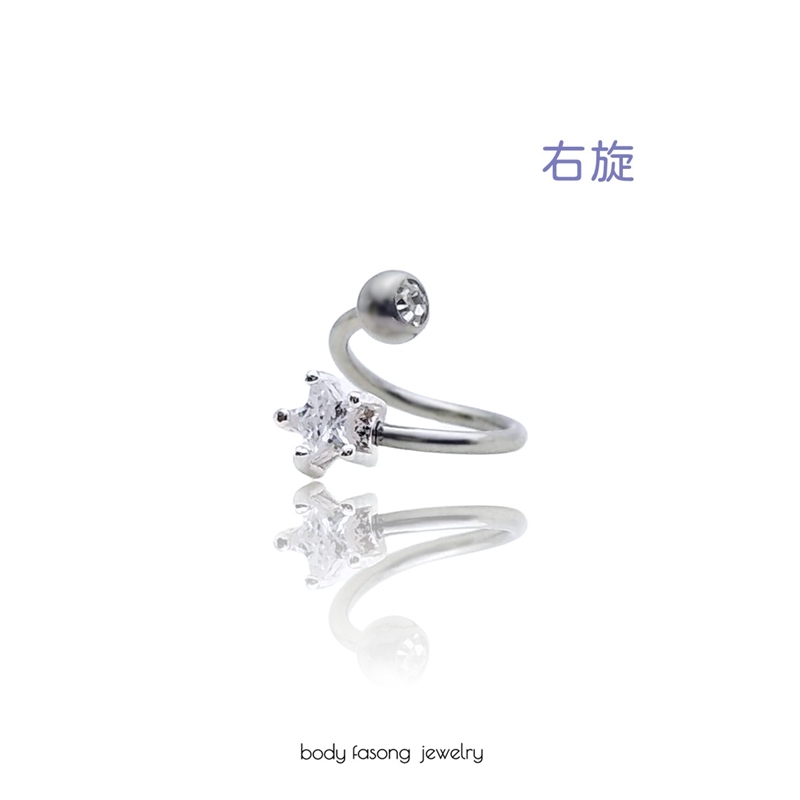 【法頌體環】爪鑲螺旋星形水晶 肚臍環 316L醫療鋼