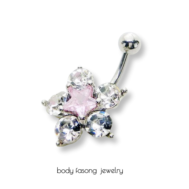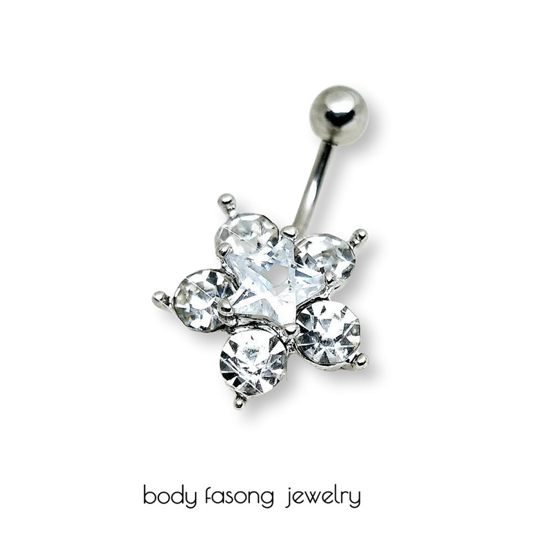 【法頌體環】星形爪鑲水晶 肚臍環 316L醫療鋼 4色