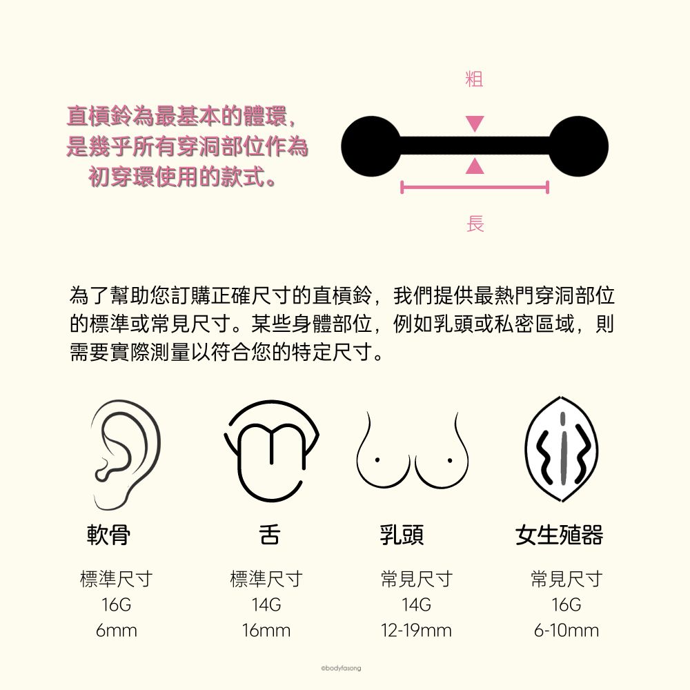 【法頌體環】16G直槓鈴 細針 316L醫療鋼 多種長度